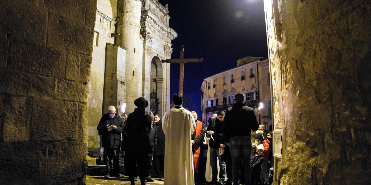 Venerdì 5 aprile, intorno 20.30, l’intera Chiesa di Sassari ha vissuto insieme al suo Pastore, Mons. Gian Franco Saba, la Via Crucis diocesana, snodatasi per le vie del centro storico della città, con partenza da Largo Seminario fino a giungere alla chiesa di Sant’Apollinare. Un momento intenso di preparazione alla Pasqua, vissuto all’insegna della meditazione e della riflessione dei misteri della passione, morte e resurrezione di Gesù Cristo, che ha coinvolto numerosi fedeli dalla Città e dai centri circostanti.