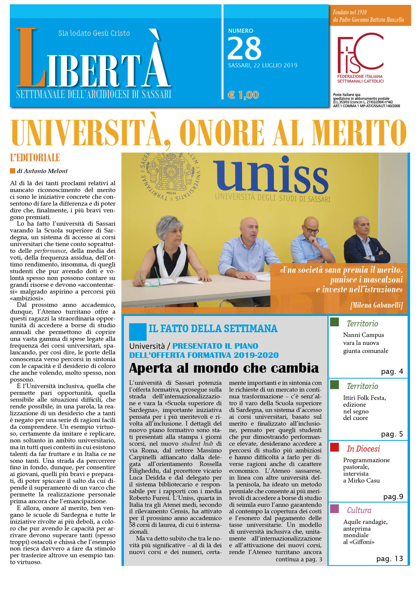 Settimanale dell’Arcidiocesi di Sassari | 22 luglio 2019