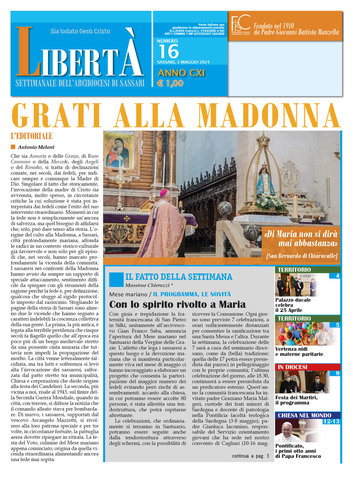 Settimanale dell’Arcidiocesi di Sassari | 3 maggio 2021