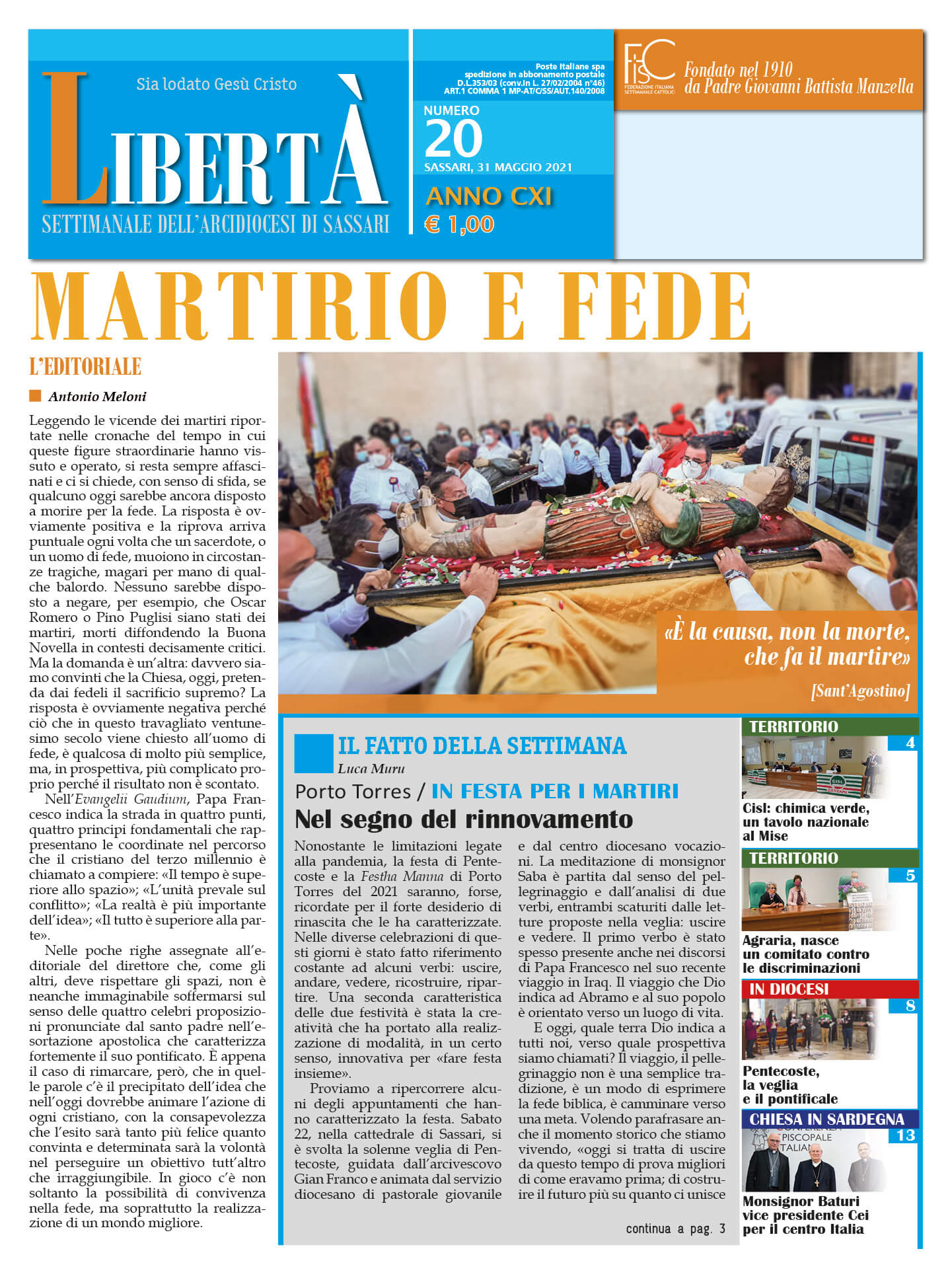 Settimanale dell’Arcidiocesi di Sassari | 31 maggio 2021