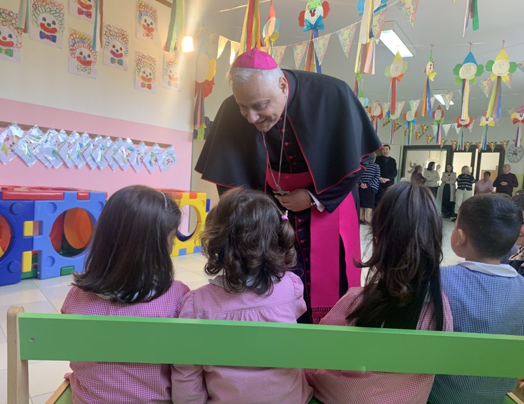 Nella mattinata di martedì 6 febbraio l’arcivescovo Gian Franco, impegnato in visita pastorale, ha incontrato gli studenti dell’asilo “Sacro Cuore”, della scuola primaria e secondaria di primo grado a Mores. Ad accompagnare il vescovo il sacerdote Don Salvatore Mangatia.