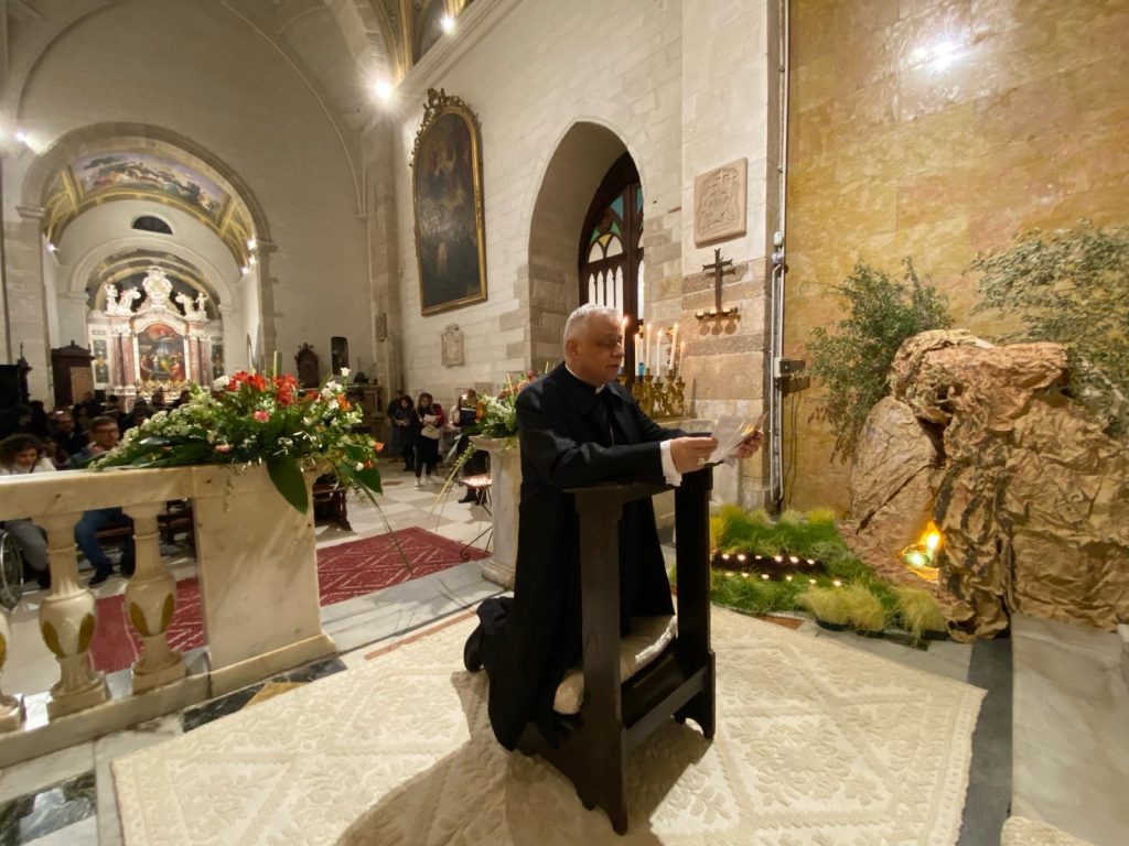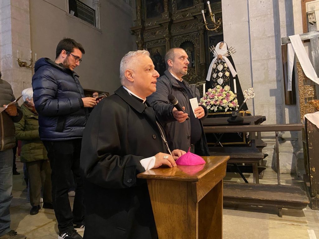 Nella tarda serata di giovedì 28 marzo si sono svolte “le Cerche”, itinerario di preghiera e adorazione. L’Arcivescovo, accompagnato dai seminaristi, ha attraversato le vie del centro storico per fare visita all’altare della reposizione nelle diverse chiese della città di Sassari. Il percorso ha avuto inizio dal Seminario arcivescovile e si è articolato in sette tappe, scandite da riflessioni e preghiere.