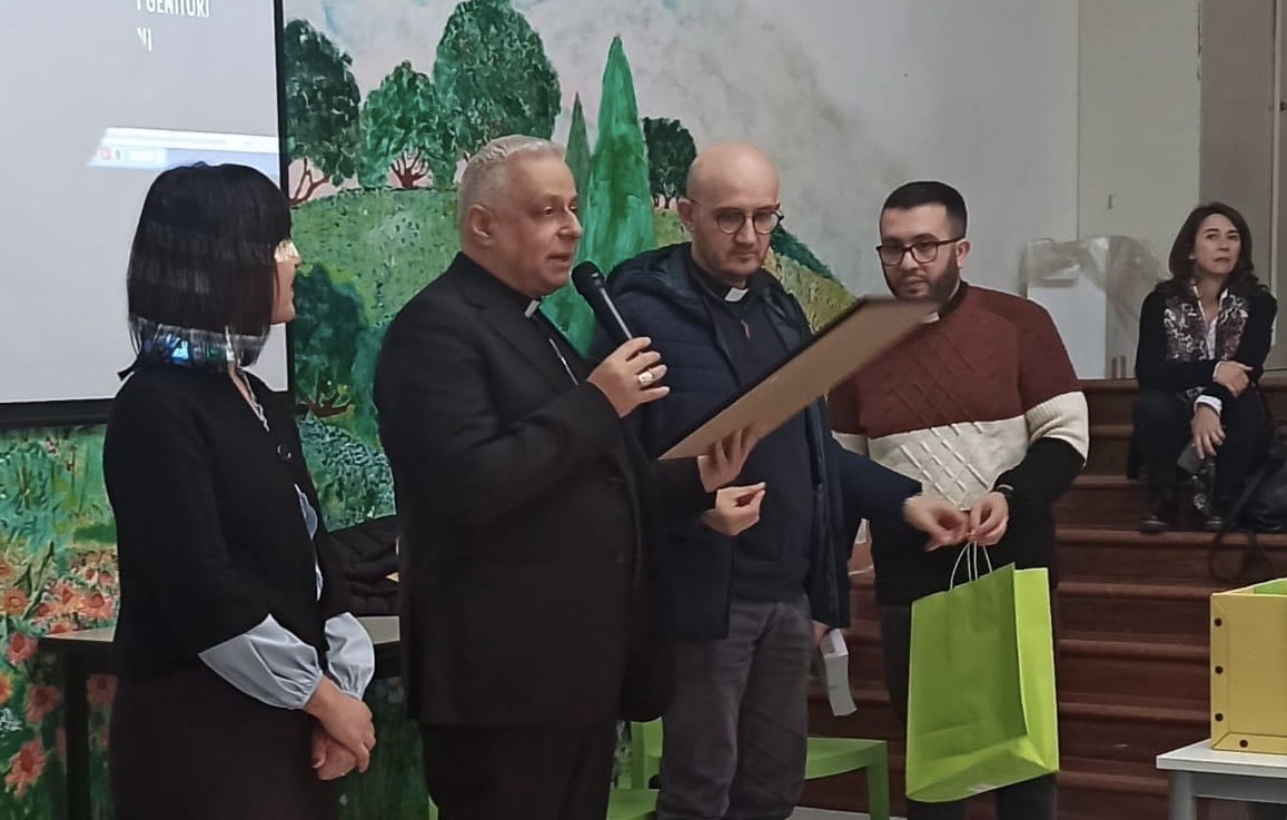 L’Arcivescovo, dopo aver intrattenuto un dialogo con gli alunni, ha ricambiato i doni ricevuti offrendo la stampa dell’opera “Il seminatore di semi di pace”, dell’artista sassarese Jacopo Scassellati, e invitando tutte e tutti, ad essere “semi di pace” per far fiorire e fruttificare la solidarietà e l’inclusione.