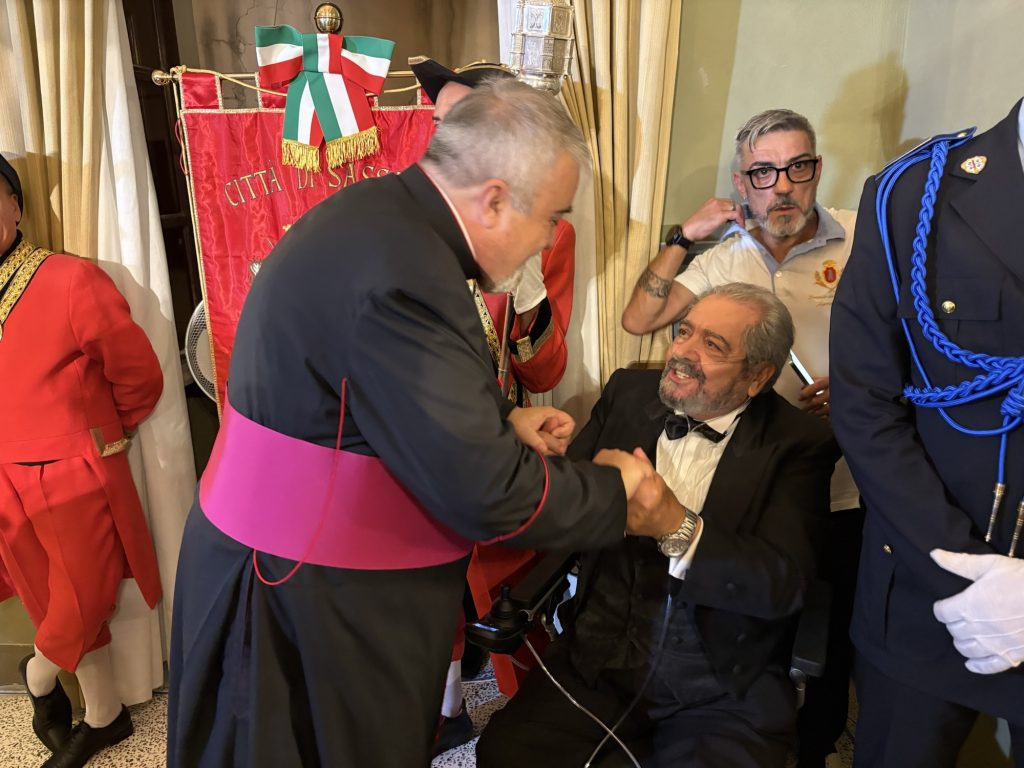 L’amministratore diocesano Mons. Antonio Tamponi ha accompagnato tutti i momenti salienti della “Faradda”. Prima la preghiera in Piazza Castello al momento della partenza seguita dalla benedizione alla comunità gremiante e ai portatori, poi il brindisi “A Zent’Anni” con tutte le autorità cittadine nella sala dell’Intregu a Palazzo di Città.