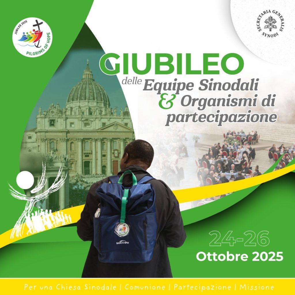 Dal 24 al 26 ottobre 2025 si terrà a Roma il Giubileo delle equipe sinodali e degli organismi di partecipazione. Si tratta di un appuntamento importante per dare riconoscimento al valore di questi organismi e alle persone che prestano servizio al loro interno, iscrivendo così l’impegno per l’edificazione di una Chiesa sempre più sinodale nell’orizzonte della speranza che non delude che celebriamo nel Giubileo.