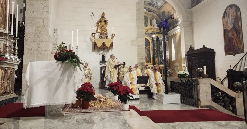 Mercoledì 24 dicembre, nella suggestiva cornice della Cattedrale di San Nicola, si è celebrata la Messa della Notte per la Solennità del Santo Natale, presieduta dall’Amministratore diocesano Mons. Antonio Tamponi. La liturgia ha avuto inizio con l’Ufficio delle Letture, un momento di riflessione e preghiera che ha introdotto i fedeli alla celebrazione del mistero della Nascita di Cristo. Mons. Tamponi, nell’omelia, ha sottolineato come il Natale rappresenti la vicinanza di Dio all’umanità, un amore che non fa distinzioni e che si fa prossimo a ciascuno di noi, indipendentemente dalle difficoltà della vita: