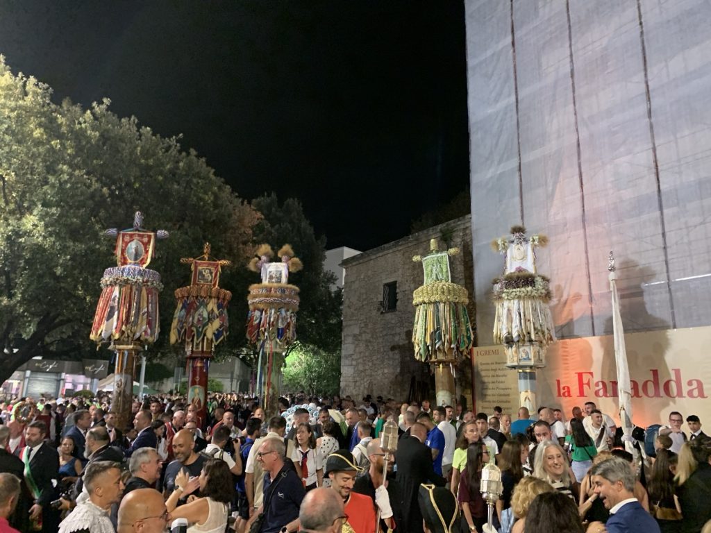 La lunga “Faradda” ha avuto inizio mercoledì 14 agosto alle 18 in piazza Castello con i candelieri che hanno attraversato il centro storico a ritmo di festa, tra due ali di folla.