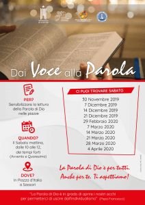Venerdì 6 dicembre, in occasione della Festa di San Nicola, Patrono della Città di Sassari, alle ore 16.30 nei locali dell’Auditorium “San Giovanni Paolo II” si terrà la Conferenza “Le ripercussioni comunitarie e sociali dell’annuncio (kerygma)....