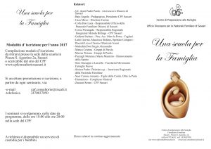 In allegato la brochure del nuovo corso della Scuola per la famiglia, promosso dall'Ufficio per la pastorale familiare e dal Centro di Preparazione alla Famiglia