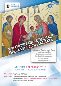 Venerdì 2 febbraio nella Cattedrale di San Nicola si celebrerà la XXII Giornata Mondiale della Vita Consacrata con la recita dei Vespri alle 17,30 e la Concelebrazione della S. Messa con il rito del Lucernario alle ore 18.00, presieduta da S. Ecc. Mons. Gian...