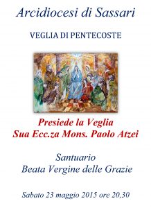 Sabato 23 maggio 2015 ore 20,30 nel Santuario B.V. delle Grazie (San Pietro in Silki) Sua Ecc.za Mons. Paolo Atzei presiederà la Veglia di Pentecoste...