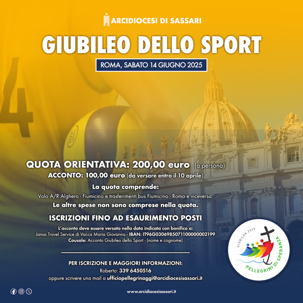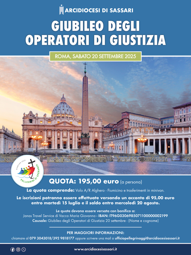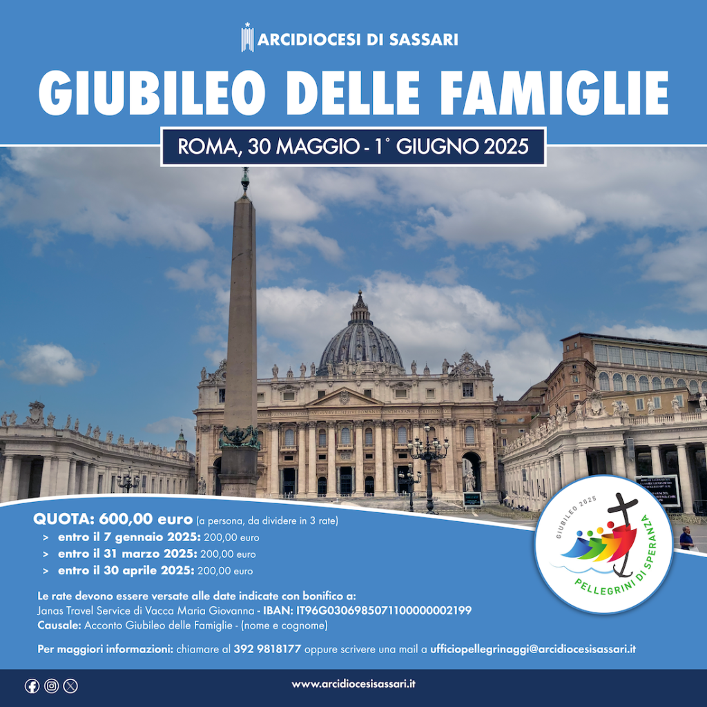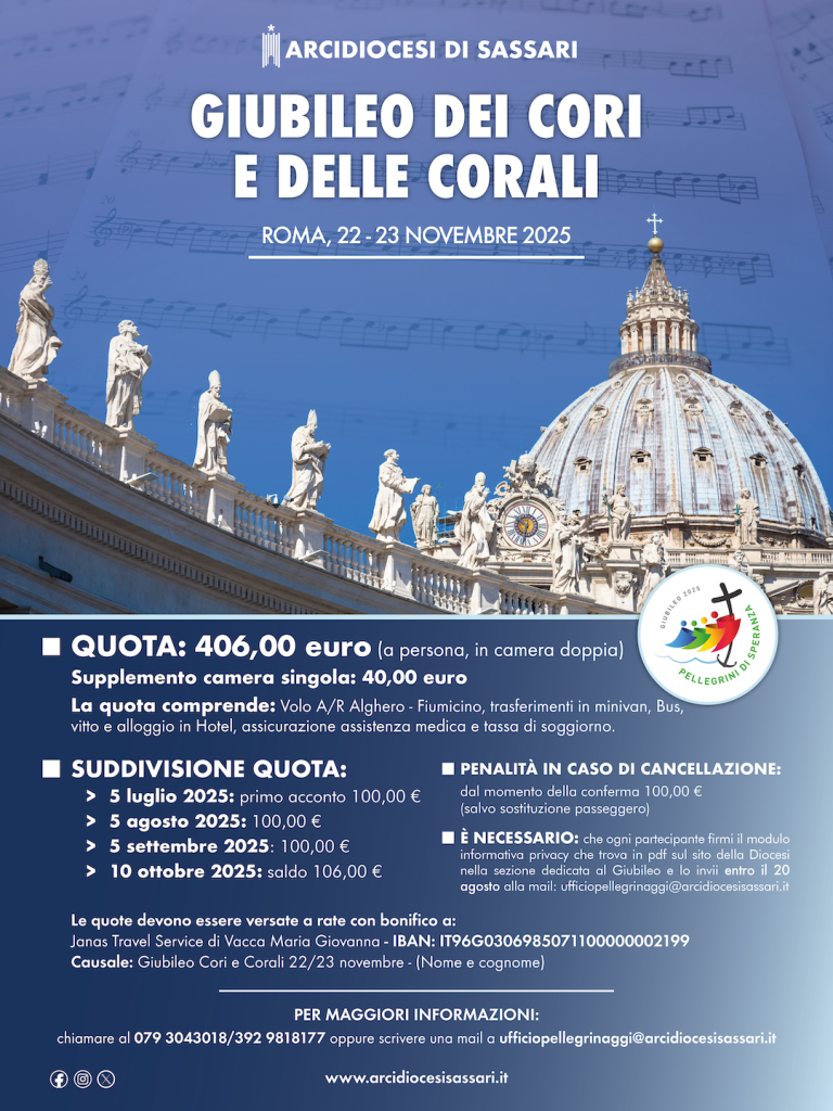 Per ulteriori informazioni è possibile rivolgersi alla Segreteria diocesana contattando il 0794139926 oppure scrivendo a ufficiopellegrinaggi@arcidiocesisassari.it.